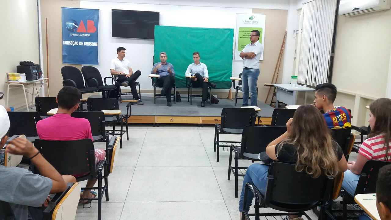 O programa OAB vai à escola com o Observatório Social – um bate-papo cidadão é fruto de uma parceria com a OAB Subseção Brusque e tem como público-alvo os alunos da 1º ano do e do Ensino Médio e alunos da EJA (Educação de Jovens Adultos). São abordados temas como noções básicas de legislação, papel do cidadão e esclarecimentos sobre direitos e deveres, na forma de uma conversa descontraída com interação dos alunos, advogados representantes da OAB/Brusque e representantes do OSB Brusque. O programa foi criado em 2018 e, presencialmente, já beneficiou 606 alunos.